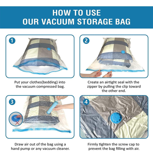 5 Pack Vacuum Bags with Hand Pump (1 Large/2 Medium/2 Small)